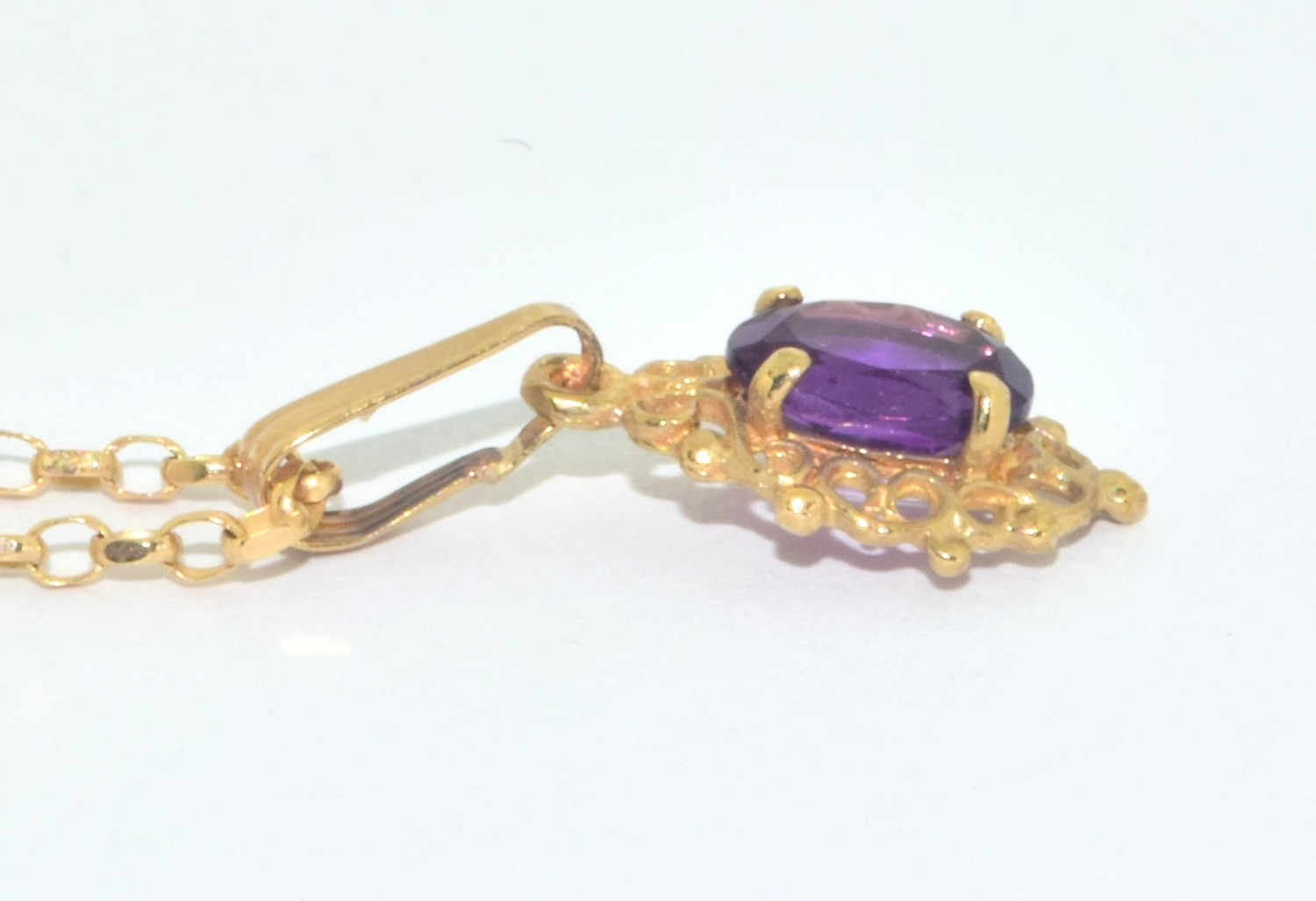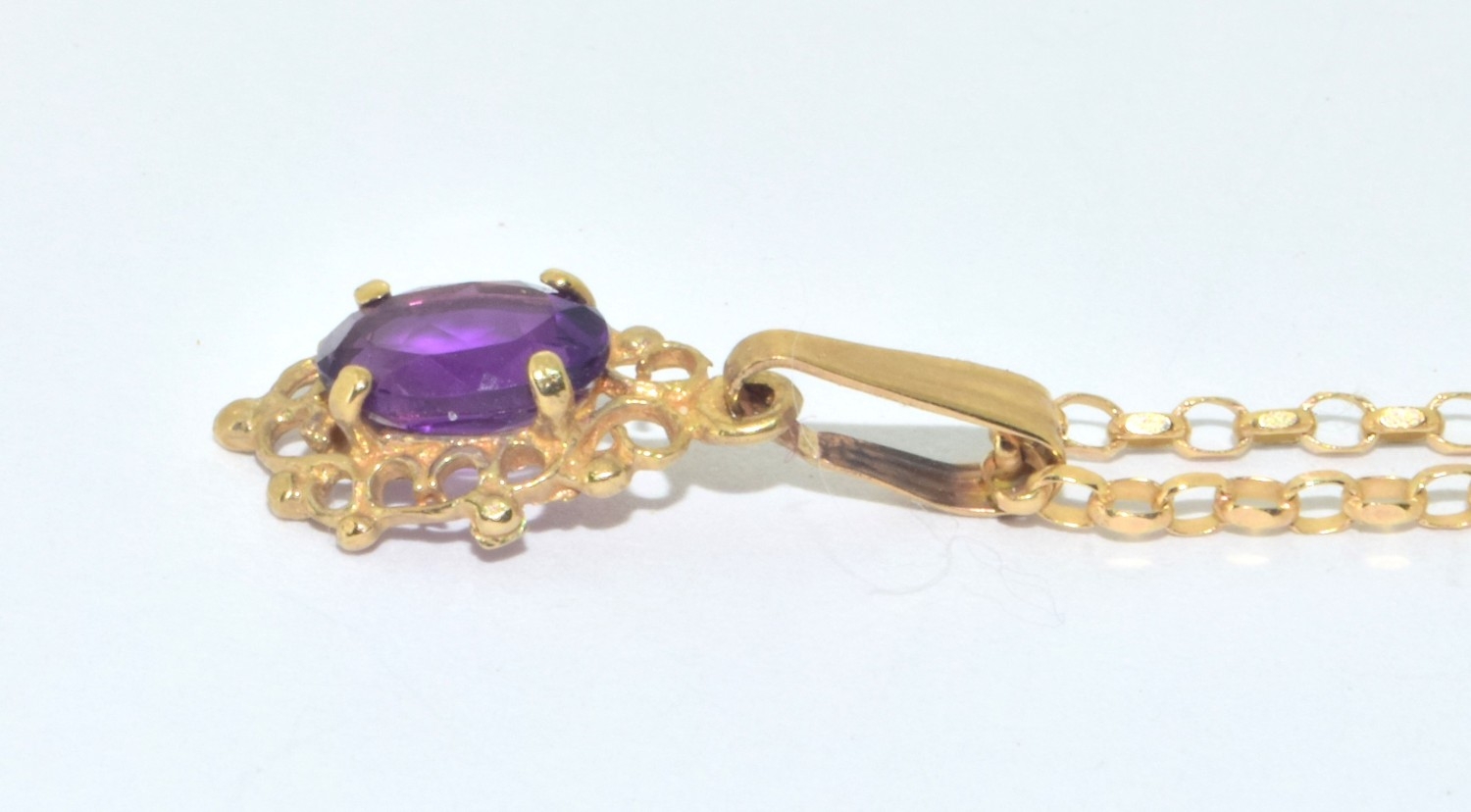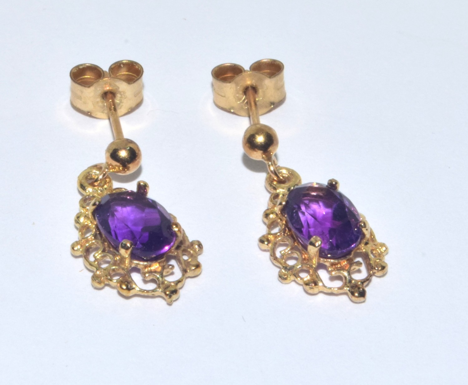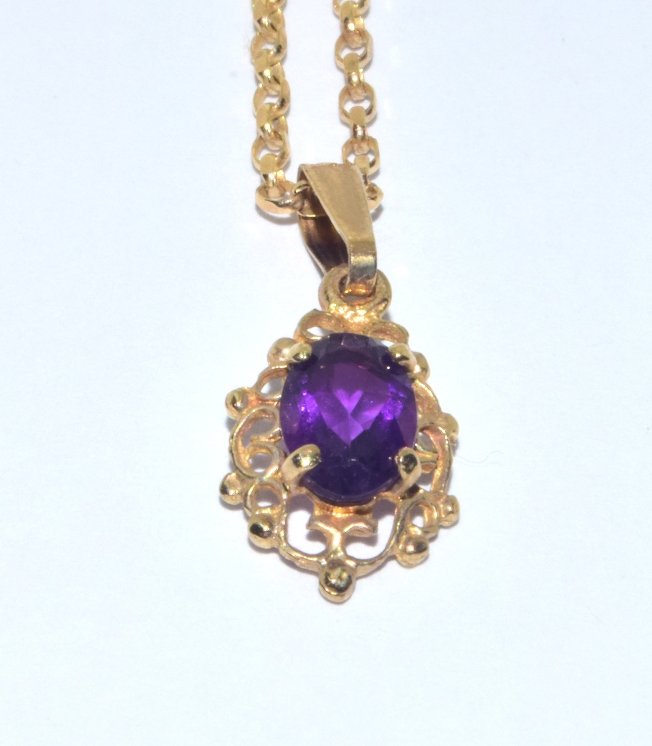 9ct gold Amethyst suite of jewellery comprising an Amethyst pendant necklace on a 9ct gold chain together Amethyst drop earrings