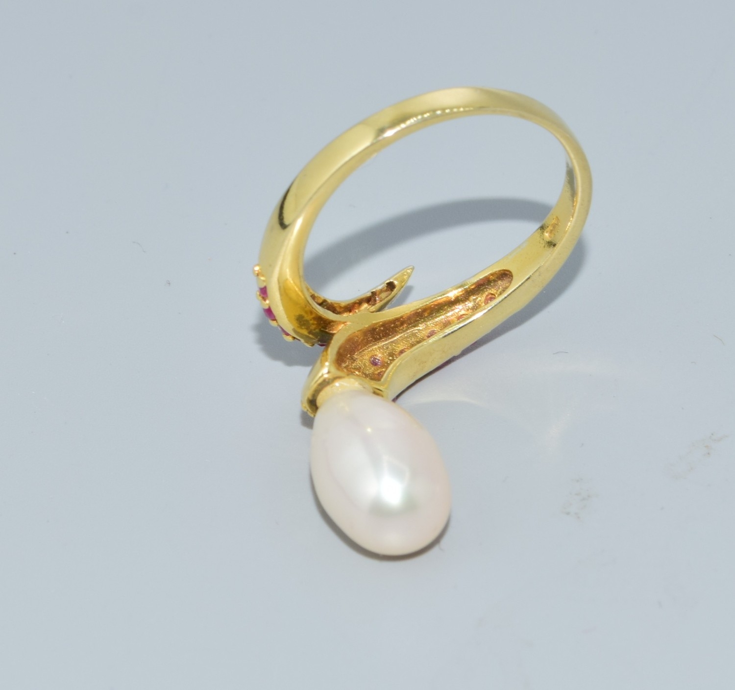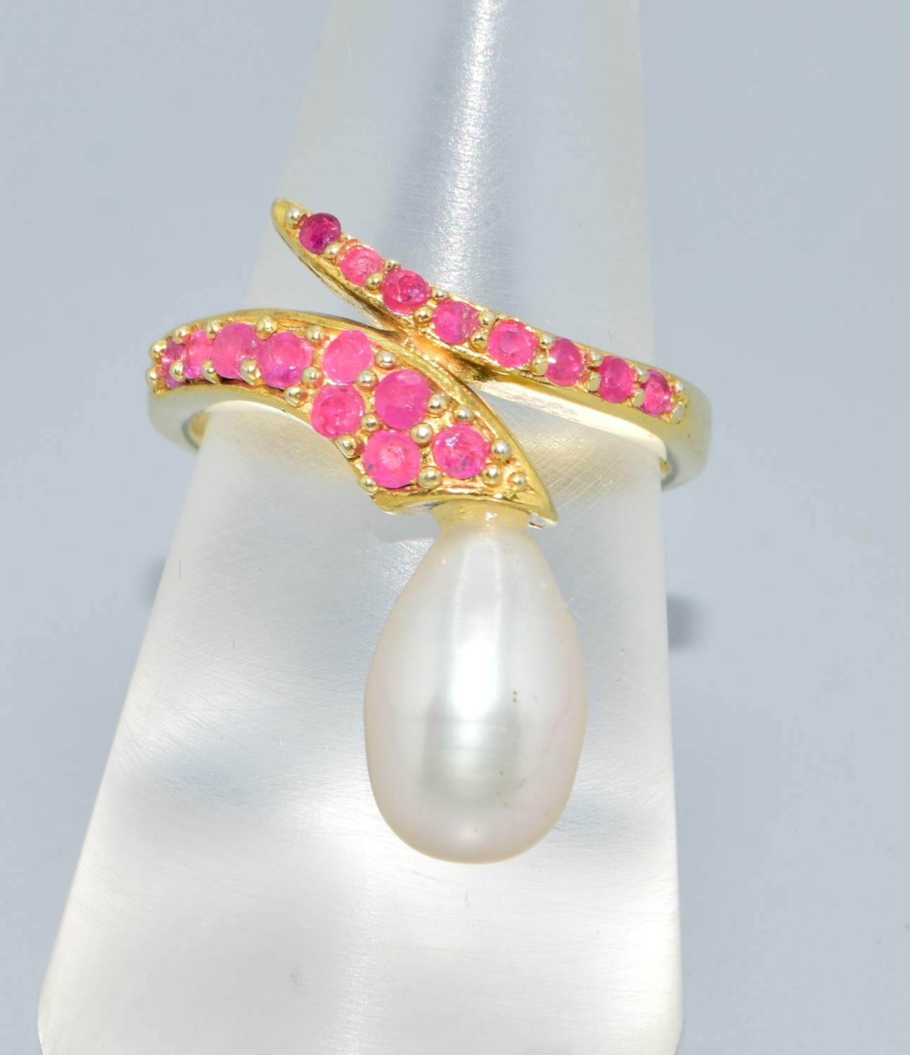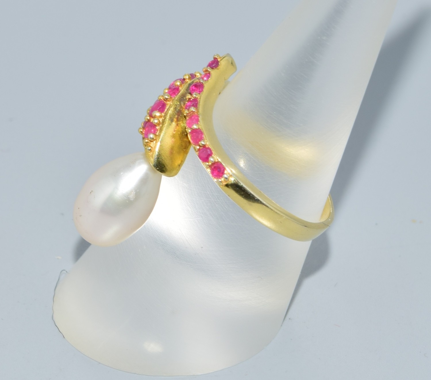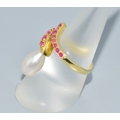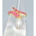 Ruby and cultured Pearl gold on 925 silver Snake ring size O